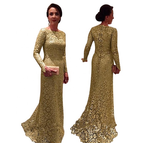 Vestidos de novia dorados de talla grande con apliques de manga larga