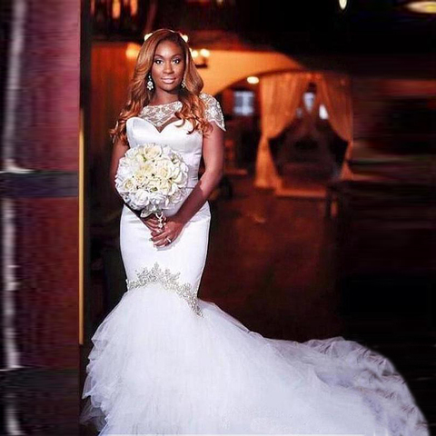 Vestidos de boda elegantes de sirena sexys de talla grande de la India, con volantes y cuentas para niñas